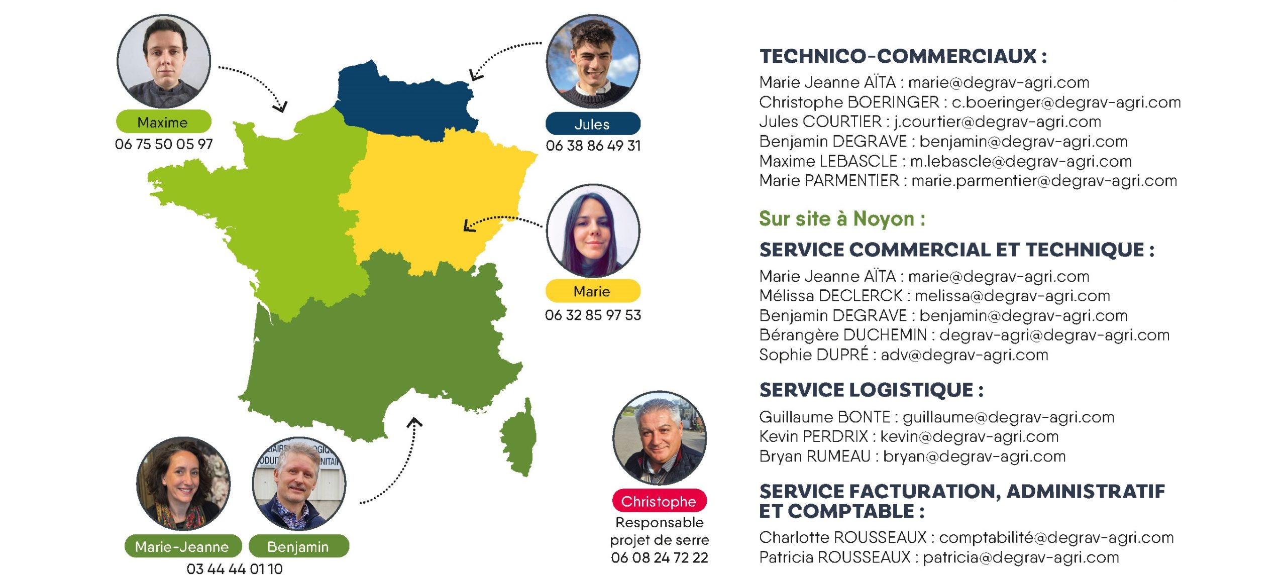 Aujourd’hui, l’équipe technique et commerciale de Degrav’agri collabore pour vous conseiller à partir d’une large gamme de plants et de variétés, d’abris, d’équipements, et de fournitures spécifiques aux cultures de fraises, petits fruits rouges, asperges et rhubarbes. Elle fournit et suit de nombreux producteurs en France et à l’étranger, et pratique une veille technique permanente dans les bassins de production et auprès des centres d’expérimentation européens.